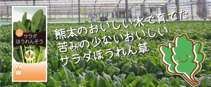 当社のサラダほうれん草は、阿蘇山系の水源で平成の名水百選にも選出されている